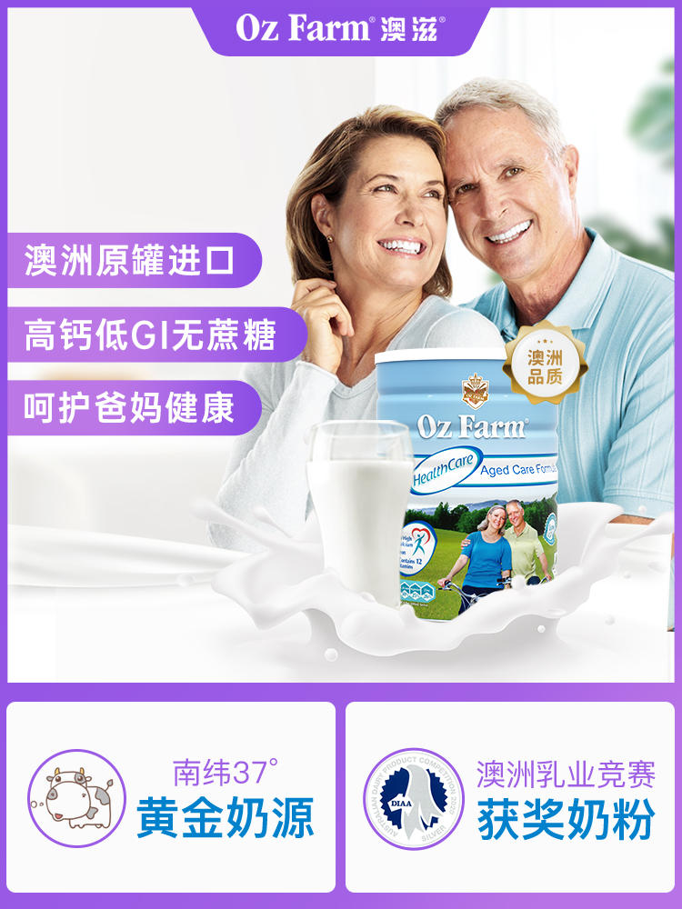 【拍两罐】【特惠】OzFarm中老年低糖高钙奶粉澳滋低GI无蔗糖900克券后96.8元